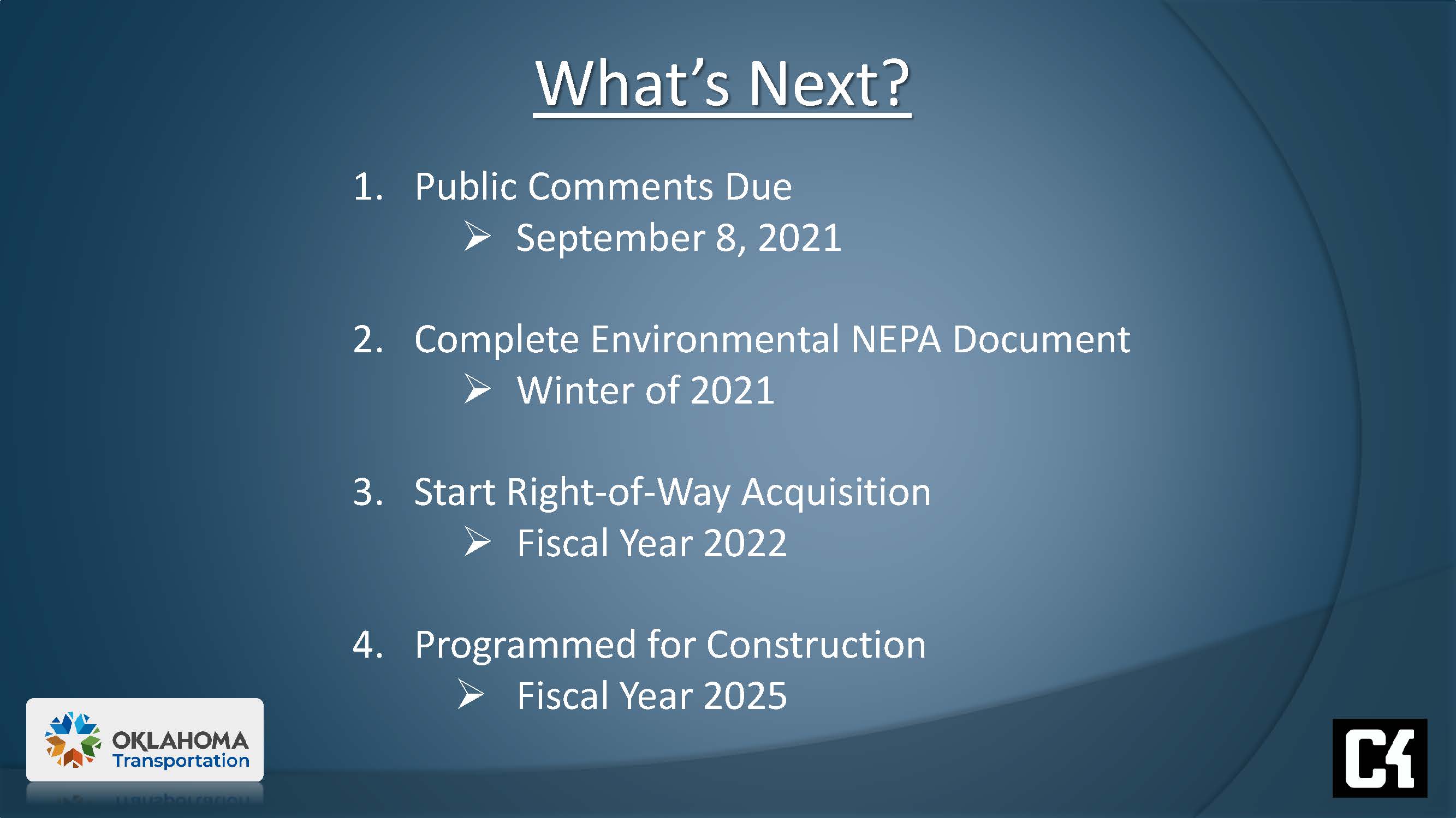 Currently construction of the project is programmed to begin in 2025.